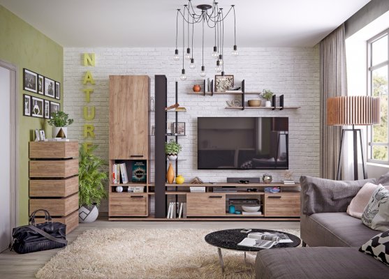 Брутальная коллекция Nature отвечает всем требованиям творческих, молодых и динамичных людей, которые ценят свободу и пространство. Выполненные в современном стиле модули практичны, функциональны, обладают "характером" и стилем.