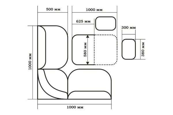 В угловом диванчике есть вместительные ящики для хранения различных вещей. Материал — ЛДСП, два ящика для хранения, столешница ЛДСП 16 мм, влагостойкие ножки,