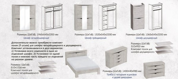 Соренто комплект полок (3шт) для шкафа 4 дв