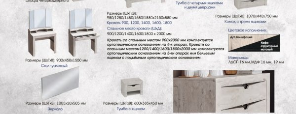 Модульная спальня Соренто Дуб бонифаций/кофе (МБГ) – товар доступен к покупке в интернет-магазине tolyattinskiy-dommebeli.ru. Цена – 42 295 руб. без учета доставки. Стоимость дополнительных услуг и сроки получения мебели уточняйте у менеджера. Возможен безналичный расчет, оплата по карте на сайте.