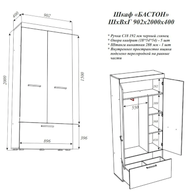 Шкаф Бастон (Эра) – товар доступен к покупке в интернет-магазине tolyattinskiy-dommebeli.ru. Цена – 12 452 руб. без учета доставки. Стоимость дополнительных услуг и сроки получения мебели уточняйте у менеджера. Возможен безналичный расчет, оплата по карте на сайте.