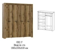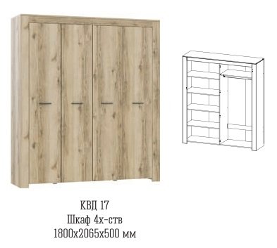 Четырехстворчатый шкаф с зеркалом Квадро-17