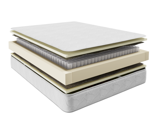 - Слой пенополиуретана повторяет форму тела, снижает ответное давление со стороны матраса, быстро восстанавливается