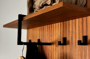 Принт, имитирующий вертикальную фрезеровку придает вешалке уникальный и современный вид, добавляя текстуру и глубину. Материал вешалки – ЛДСП, что обеспечивает прочность и долговечность, а также легкость в уходе.